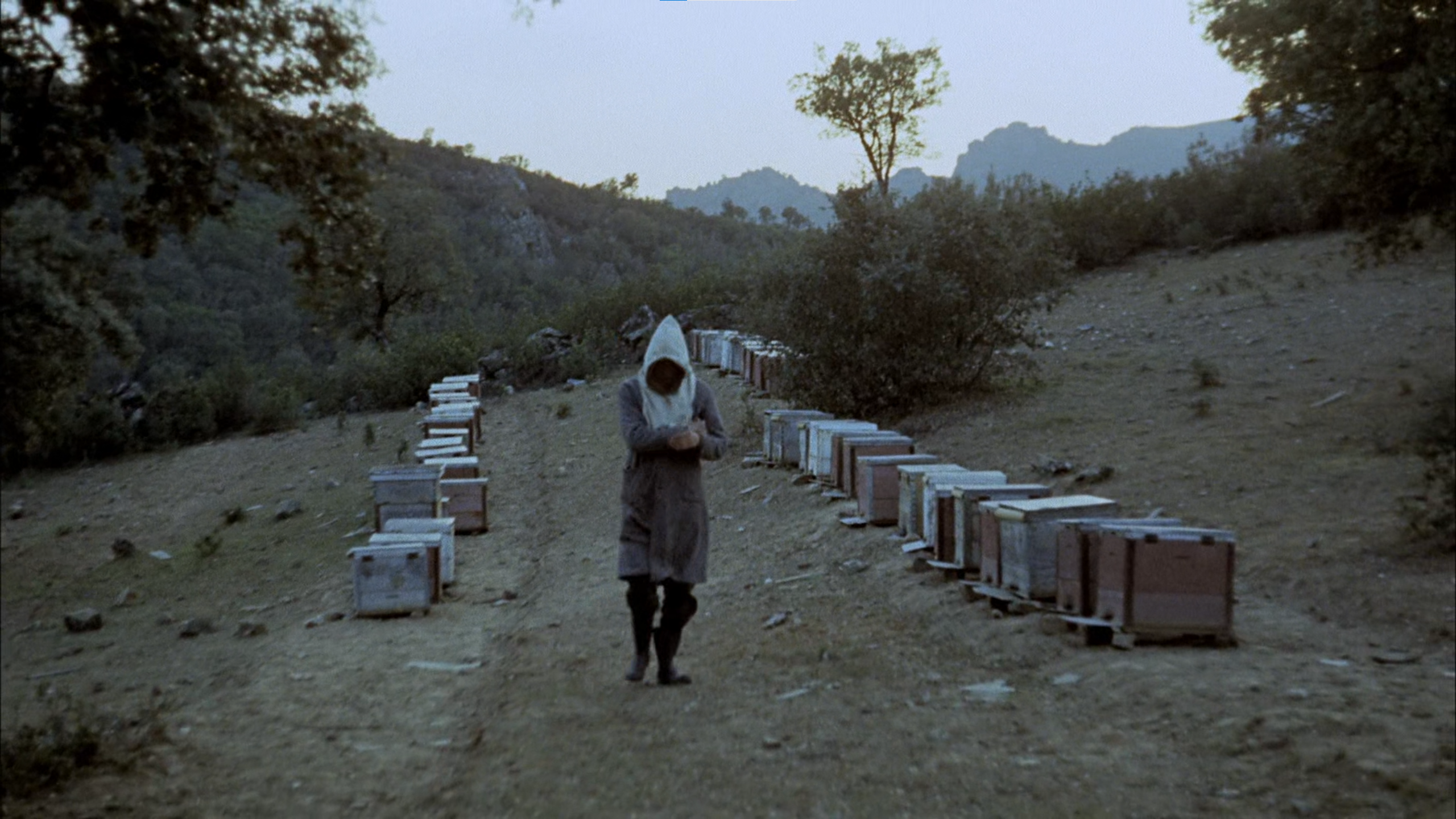 Or why not begin with that strange title, El espíritu de la colmena, which translates to The Spirit of the Beehive? It seems to push us towards the father, Fernando, who keeps bees: