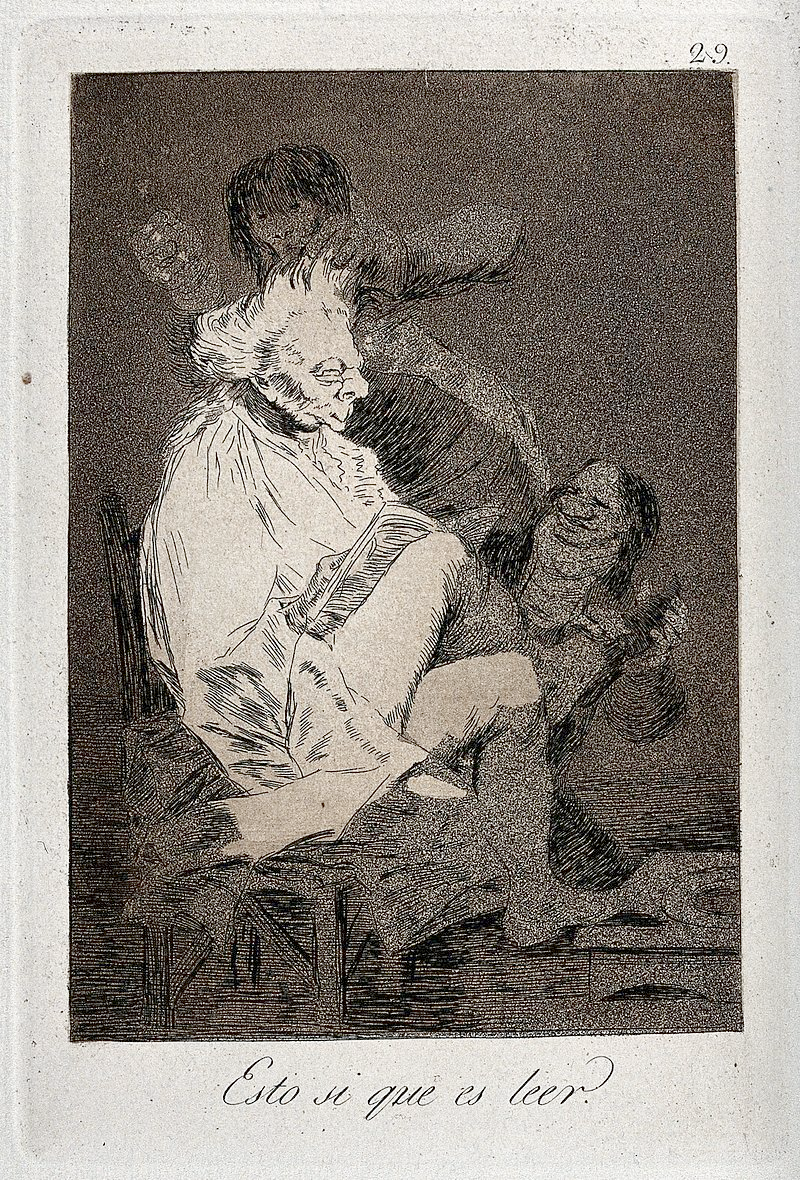 But now someone still holding fast to the first thesis – the Caprichos are not really social ethnography – might say: Ok, fair enough, but still, those are fantasies – and if shared ones; these nightmarish etchings are not portraying Spanish social life as it is, but as it imagines or fears itself to be; donkey-headed monks, birds with human heads sodomized by maids, imprisoned hobgoblins, and guru parrots are notpart of Spanish society, just of its cultural imagination. But I would answer, with Lorca, with scientific surrealism, that the ways in which a society thinks about the world – its fears, its hopes, in short: its desires – is not just one, but an essential part of that society.