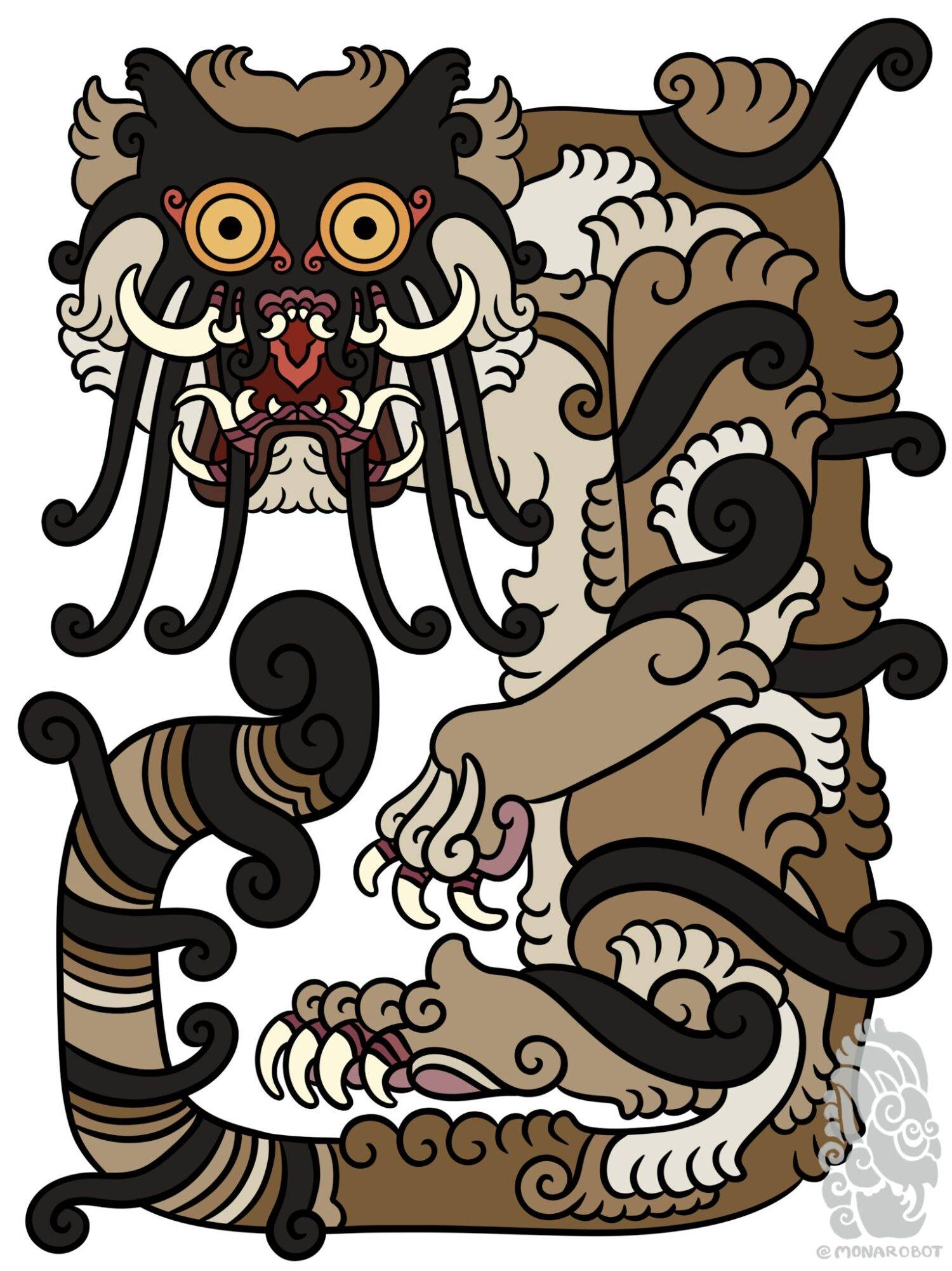 and the one who lived on the fjord stopped looking at the eternally overcast ocean and moved down to Oslo, and there opened up a small restaurant serving a few select Korean dishes, and to maybe gamble, metaphysically, for a bit of luck with this adventure, chose to call it Dream Tiger, and even drew a mascot and pinned it onto the dining room wall and it looked like this